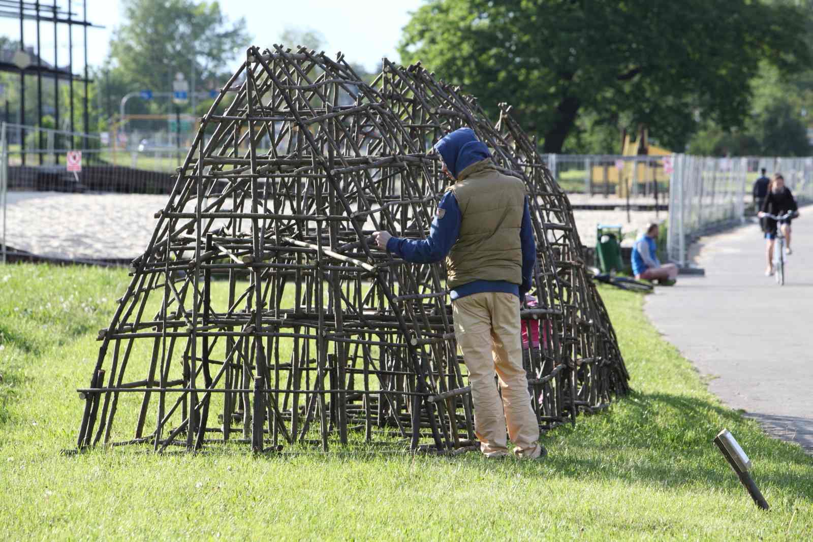 szkutaSzkuta (lokalizacja: bulwar Wołyński) – nawiązuje do bogatych i często mało znanych tradycji wiślanej żeglugi. W dawnej Polsce flis, czyli rzeczny spław surowców i towarów, stanowił jedną z najważniejszych form transportu. Najczęściej przewożono w ten sposób zboże, sól, ale też i drewno. Poza szkutami używano do tego również komięg, galarów i tratw. W samym Krakowie flisaków nazywano powszechnie włóczkami i taką właśnie nazwę można najczęściej usłyszeć na przykład na Zwierzyńcu. Instalacja kształem odnosi się również do rybołówstwa, które stanowiło jedną z ważniejszych gałęzi gospodarki na terenach położonych nad Wisłą.